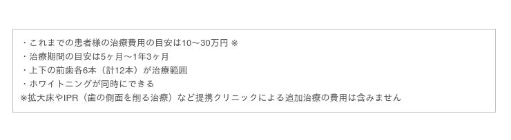 また、ご契約頂いた方全員に最低1本のホワイトニング剤もお渡ししているため、キレイな歯並びと、白い歯の両方を同時に目指せます。