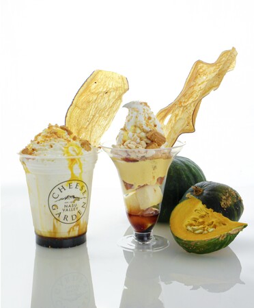 チーズガーデンを運営する株式会社庫や(本社:栃木県那須塩原市、代表取締役社長:冨田智夫)は、2022年10月1日(土)より、チーズガーデン人気ナンバーワン商品『御用邸チーズケーキ』と、那須町の稲作ファーム稲作本店の大人気のお菓子「イナポン」、茨城県の人気焼き芋専門店芋やすの「おさつチップス」の北関東の3つの人気スイーツをトッピングした『パンプキンチーズケーキパフェ』と、”飲むチーズケーキ”の新フレーバー『パンプキンチーズドリンク』が新登場いたします。