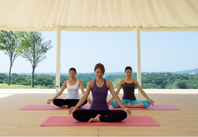 伊勢志摩国立公園の中に立つNEMU RESORTは、森と海に囲まれ豊かな自然環境にあり、その広大な敷地では、自然を活かした体験プログラムが充実。丘の上に設けられたヨガ専用テラスでは、「 チャクラ」を意識したヨガをご体験いただけます。