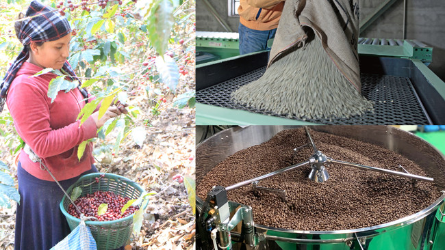 びっくりドンキーの珈琲は、自社基準を満たしたグアテマラ、エチオピア、ペルーの珈琲農園と直接契約し、風味が際立つ高地栽培によって生産された豆を使用しています。産地から届いた珈琲豆は、北海道札幌市にある「自社焙煎工場」でロースト。できるだけ新鮮な味わいを愉しめるよう、店舗から注文を受けた分だけ焙煎を行っています。“From Seed To Cup” 珈琲豆の産地から店舗まで、びっくりドンキーは、より高品質な一杯を追い求めています。