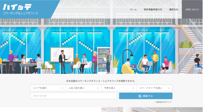 スタートアップ・ベンチャー企業に特化したオフィス仲介業務を行っている株式会社IPPO(東京都渋谷区 代表取締役社長:関口秀人 以下IPPO)から、日本全国のコワーキングオフィス・シェアオフィスを検索できる「ハイッテ コワーキング&シェアオフィス」が6月16日(水)にリリースされました。