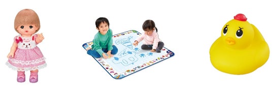 当社では、温度の変化で色が変わるインキ「メタモインキ」を応用し、未就学児童向けの知育玩具をはじめとする様々な玩具の企画開発を行っております。主な商品に「スイスイおえかき」シリーズ、抱き人形「メルちゃん」シリーズがあります。いずれもロングセラー商品で「スイスイおえかき」は発売26年目、「メルちゃん」は発売34年目を迎えました。今年で25年目を迎えた「アヒル隊長」なども含め、これからも玩具を通じ、子供たちに感受性と創造性をのばす「夢と小さな驚き」を提供し続けます。