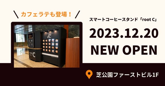 株式会社New Innovations (本社:東京都江東区、代表取締役CEO兼CTO:中尾 渓人、以下「New Innovations」)は、住友不動産株式会社(本社:東京都新宿区、代表取締役社長:仁島 浩順)と協業し、スマートコーヒースタンド root C(ルートシー)を住友不動産芝公園ファーストビル1階に設置し、12月20日(水)よりサービスを開始いたします。本スタンドではブラックコーヒーに加え、2種類のカフェラテもスペシャルティコーヒーで提供いたします。