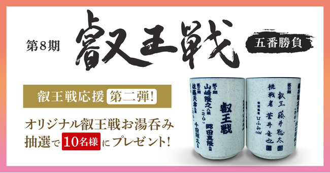 ひふみオリジナル叡王戦お湯呑みを抽選で10名様プレゼント。