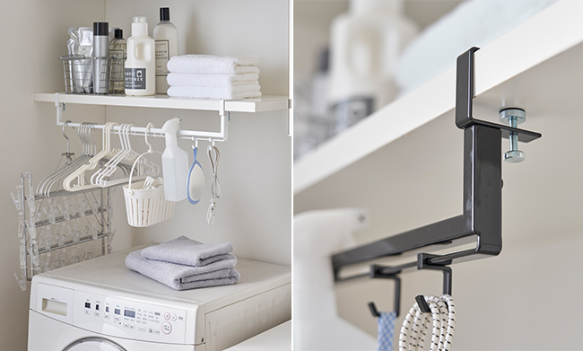 ハンガー・ピンチハンガー・スプレー・洗濯小物などを引っかけて、まとめて一括収納。