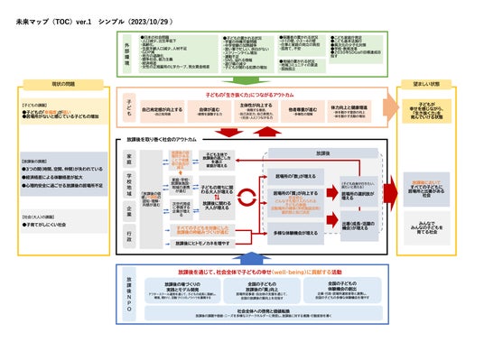 こうした不安やもどかしさも全て出し合い、私たちが願う子どもたちの未来はどのような状態か、またその理想の状態に向けて何をし、どのような変容をもたらしていくのかを何度も対話を重ねて言葉にし、外部の専門家のお力もお借りしながら、1年8ヶ月をかけて、「Theory of Change ※」をつくり「未来マップ」と名付けました。