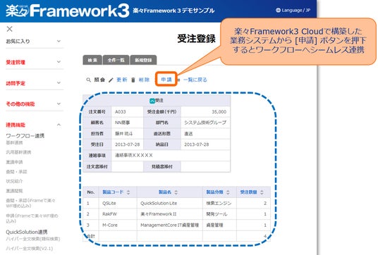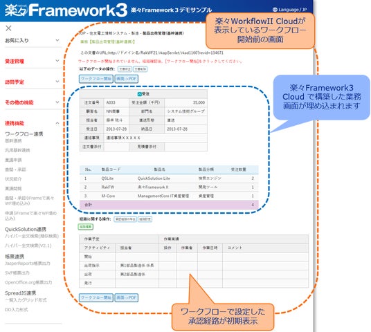 ~ 楽々Framework3 Cloudと楽々WorkflowII Cloud環境契約が連携 ~