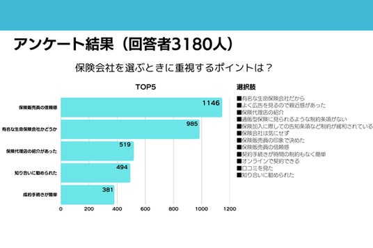 同じくパワープランニングが運営する「みんなの生命保険アドバイザー」を利用し保険相談を実施した方を対象にアンケートを実施し「保険会社を選ぶときに重視しているポイントは?」を独自に調査しました。