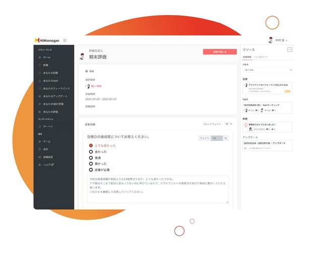 HiManagerは、ハイブリッドワーク時代に必要な人事評価を提供しており、従業員エンゲージメントを向上させ、輝く組織作りを可能にします。
