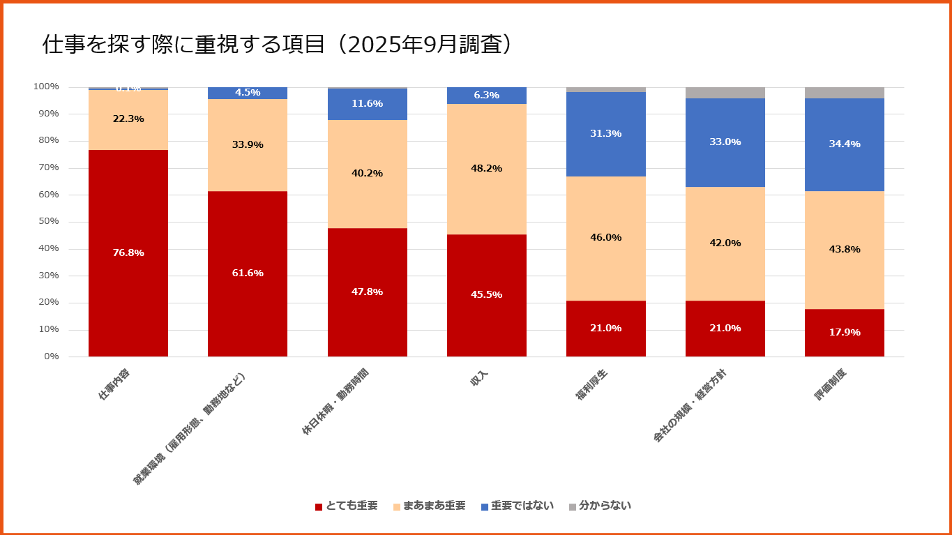 ・しかし、仕事内容の魅力が高く評価されているからこそ、それを支える環境の有無が「選ばれるかどうか」の決定的な分かれ目になっていると言えるでしょう。