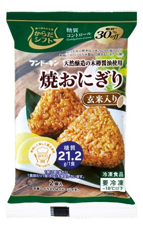 ・糖質30%off(※)、1食(1個)あたりの糖質量を21.2gに抑えた糖質オフの焼おにぎりです。調理方法は耐熱皿に立てて置き、ラップをせずに電子レンジで加熱です。木樽で発酵熟成された天然醸造醤油を使用。食物繊維を含み栄養価が高く、玄米特有の匂いを抑えた美食玄米を使用しております。