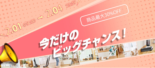 2024年2月1日(木)~2月4日(日)期間中、アマゾンのTineco公式ストアにて人気水拭き掃除機を最大30%OFFで販売いたします。