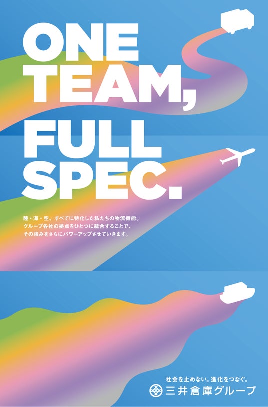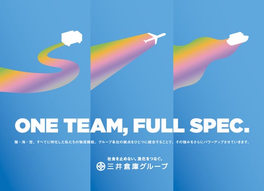 いできました。本広告のメッセージである「ONE TEAM, FULL SPEC.」は、多様な物流機能と文化を持つグループ各社が集結してさらなるグループ一体化を促進し、これまで培ってきた陸・海・空にわたるフルスペックの物流機能を最適に組み合わせることで、新たな物流の可能性と価値向上に努めていくという姿勢を表現しています。