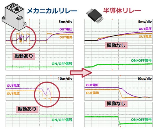 メカニカルリレーでは発生してしまうON/OFF時の微細な振動が、半導体リレーでは発生を予防。※3