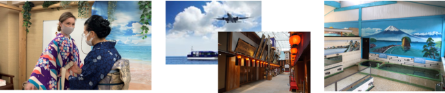 着物(長襦袢,衿芯,半幅帯,草履,腰紐を含む)を無料で貸し出し,着付けの先生による指導のもと着物を実際に着て羽田空港第3ターミナル内を散策してもらう。