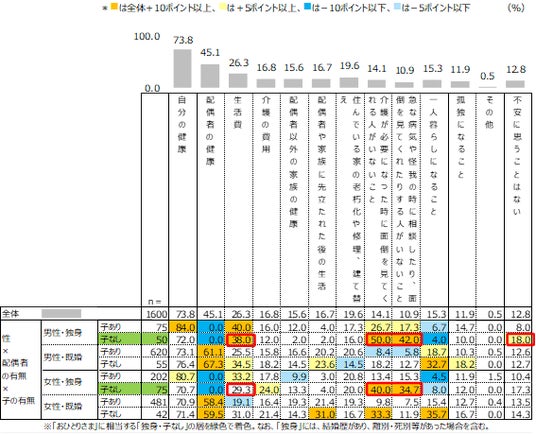図表 9: 『将来不安の有無、内容』(配偶者・子の有無別)