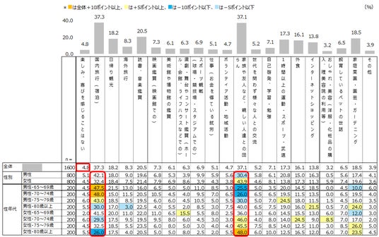 「旅行」や「親しい人達との団らん」に生きがいを感じている人が多い。