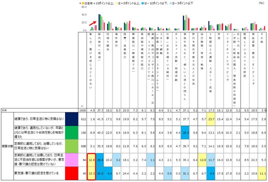 図表 7: 『現在の楽しみや喜びを感じることの有無、内容』(健康状態別)