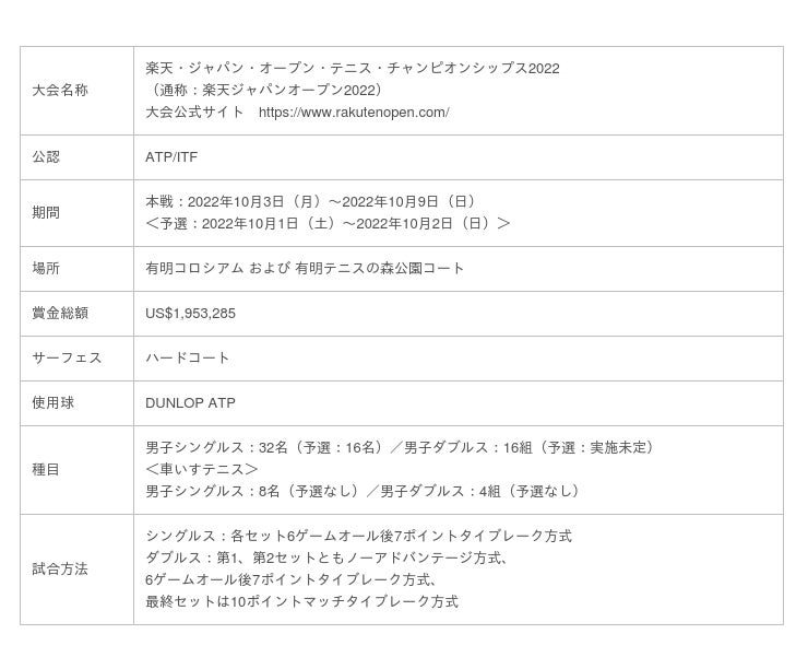住友不動産ヴィラフォンテーヌ株式会社(本社:東京都新宿区、代表取締役:桝井 俊幸、以下「当社」)は、2022年10月1日(土)から東京・有明コロシアムおよび有明テニスの森公園コートで予選がスタートするテニスの祭典「楽天・ジャパン・オープン・テニス・チャンピオンシップス2022(以下、「楽天ジャパンオープン2022」)」のオフィシャルスポンサー契約を締結いたしました。これを受けて、当社ではオフィシャルホテルとして2022年8月27日(土)から楽天ジャパンオープン2022の観戦チケット付き宿泊プランを、当社公式サイトにて発売することが決定いたしましたのでお知らせいたします。