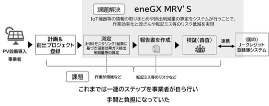 太陽光発電設備を導入する法人等は、『eneGX MRV’S』を利用することで、J-クレジットを効率的に創出することが可能になります。