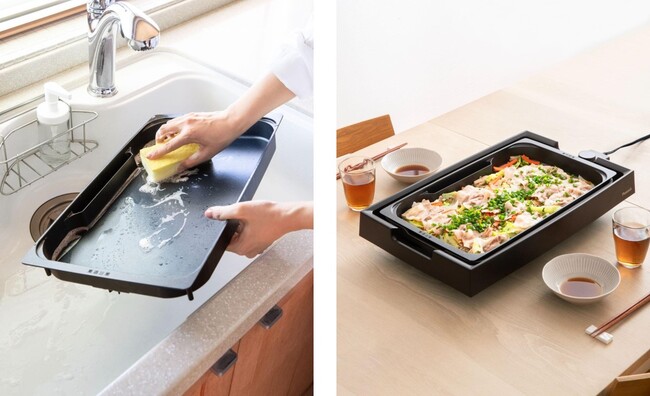 家庭料理の定番となったホットプレートグルメ。お家で楽しむホットプレートを今よりもっと手軽に、そして快適に楽しんでいただきたいという思いから、どのご家庭にも馴染むデザインと、手軽に使える機能性を採用した新しいホットプレートが誕生しました。
