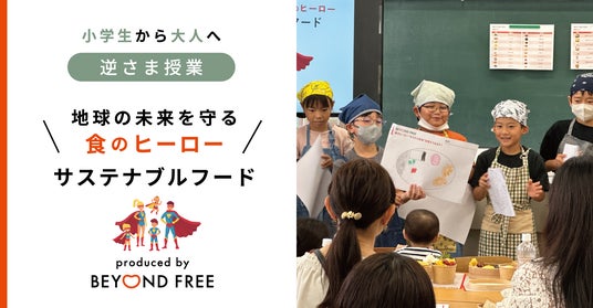 テーブルマーク株式会社(本社:東京都中央区、代表取締役社長:松田要輔)が展開するBEYOND FREEは、7月13日(土) に東京都足立区立中川北小学校にて、小学3~6年生と保護者32名を対象に、「地球の未来を守る食のヒーロー“サステナブルフード”」をテーマに、地球温暖化をきっかけにプラントベースという新しい食の選択肢を学ぶ特別出張授業を実施。SDGsや環境への取り組みについて学ぶだけでなく、オリジナルのサステナ弁当作りや、小学生から保護者に学んだことの授業を行う”逆さま授業”を実施しました。