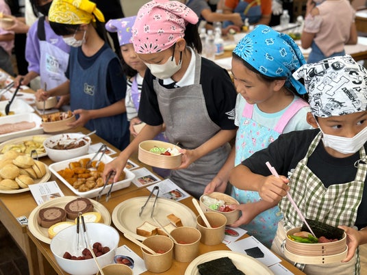 今回は、小学3~6年生18名に授業で学んだことを活かして、「食のヒーロー“サステナ弁当”」をテーマにオリジナル弁当を企画。生徒の自由な発想でオリジナルのお弁当を考え、スケッチ用紙に絵を描き、実際にそれをお弁当箱に詰めてもらいました。