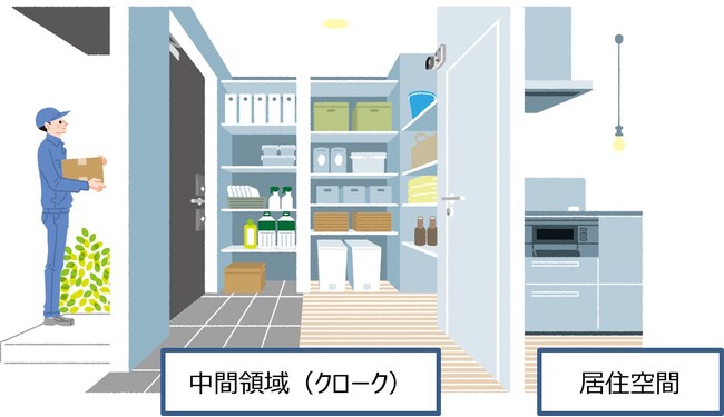 宅配サービスのニーズの高まりの中で、置き配が広く普及し、宅配物の盗難リスクや、不在とわかることによる空き巣リスクなどの課題も浮かび上がっています。旭化成ホームズは、セキュリティレベルを設定できる中間領域(クローク)を住宅内に設けることで、非対面・不在時でも宅配物の受け取り・発送ができるシステム「スマートクローク・ゲートウェイ」を提供しています。