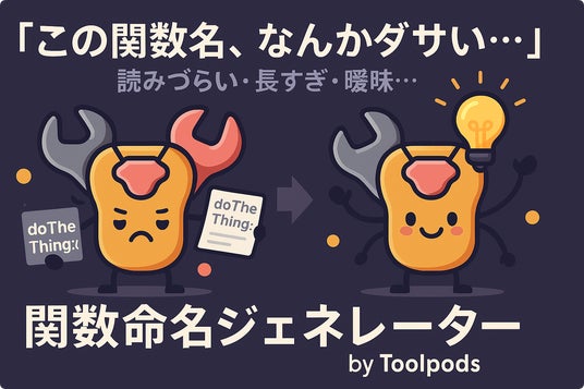 そんなあなたに朗報です!Toolpodsから、AIを活用した全く新しい関数命名ジェネレーターが誕生しました。その名も「関数命名ジェネレーター by Toolpods」。
