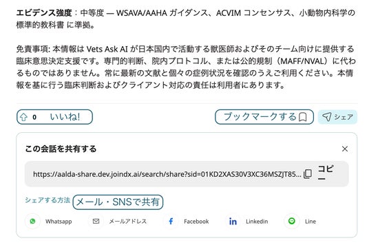 *”Vets Ask AI”は臨床判断を補助するものであり、これを代替するものではありません。また、匿名化された質問内容が教育コンテンツやフィード作成に活用されます。