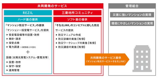 今回の協働では、当社の「マンション防災サービス」、三菱地所コミュニティの「そなえLiNK」を掛け合わせた新サービスを展開します。