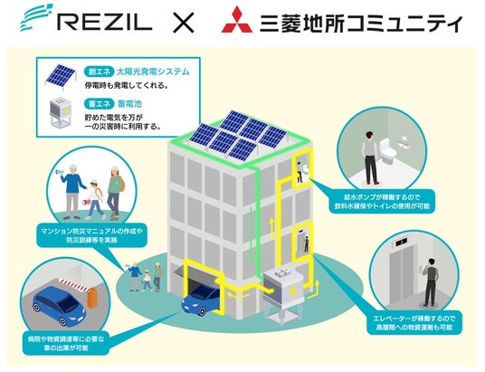 「脱炭素を、難問にしない」をミッションとして掲げるレジル株式会社(本社:東京都千代田区、代表取締役社長 丹治保積、以下 当社)はこの度、三菱地所グループのマンション管理を手掛ける三菱地所コミュニティ株式会社(本社:東京都千代田区、代表取締役社長 大井田篤彦、以下 三菱地所コミュニティ もしくは同社)と、マンションのレジリエンス向上や脱炭素化社会の実現に寄与することを目的として、業務提携契約を締結しました。当社の「マンション防災サービス」と、三菱地所コミュニティの防災コンセプト「そなえLiNK」を掛け合わせた新サービス(以下 本サービス)を共同開発し、ハード・ソフトの両面で災害に強いマンションを構築しつつ、マンション1棟の電力をまるごと脱炭素化できる仕組みを提供します。また当社の「マンション防災サービス」における他社との業務提携は初の試みとなります。
