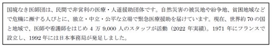 ―「国境なき医師団」での医療・人道援助に活用―