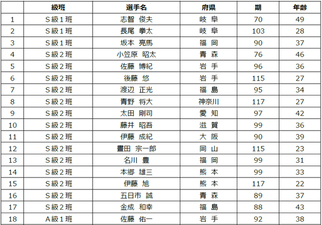 セカンドクォーター ラウンド2は過去PIST6優勝経験者が多数参戦。前開催優勝の藤井昭吾(滋賀/写真左)を筆頭に、晝田宗一郎(岡山)、青野将大(神奈川)、堀江省吾(長野)らの若手3人が揃い、初日から高いレベルのレースが期待できそうだ。