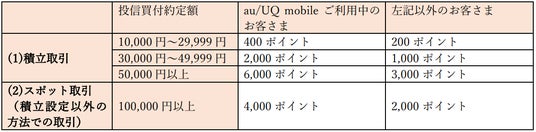 ・投信買付約定額に応じて、以下のPontaポイントをプレゼントします。