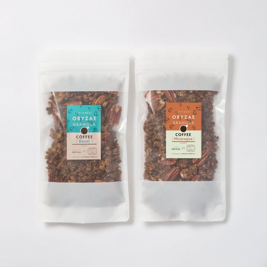デカフェ:カフェインが気になるという方でもお楽しみいただけるよう、ノンカフェインのコーヒーグラノーラをご用意。使用しているメキシコ産のコーヒー豆はマロンを思わせるようなこっくりとした優しい甘さが特徴です。