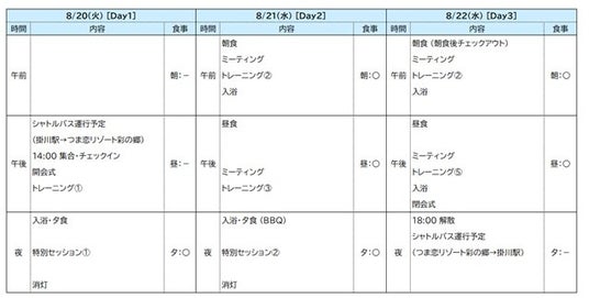 ※詳細は下記「キャンプスケジュール」をご参照ください。