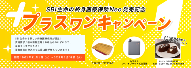 SBI生命は、2022年11月1日(火)より「SBI生命の終身医療保険Neo発売記念 プラスワンキャンペーン」を実施いたします。