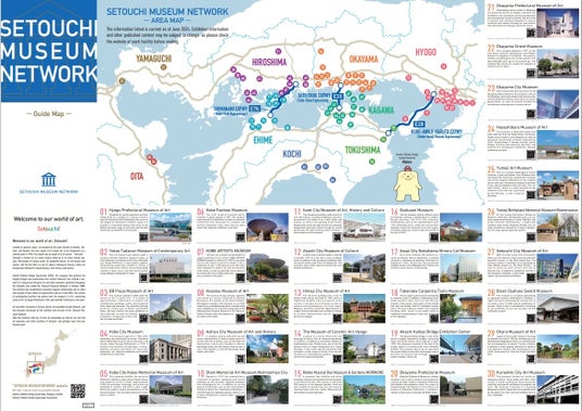 瀬戸内地域に点在する美術館、博物館などの文化芸術施設で構成する「せとうち美術館ネットワーク」(事務局:本州四国連絡高速道路株式会社、一般財団法人本州四国連絡高速道路協会)では、本ネットワークに参加する文化芸術施設(以下、「参加施設」)及び瀬戸内地域全体への訪日外国人(インバウンド)の周遊促進の一助となることを目的に、参加施設を一覧で紹介した英語版マップ『SETOUCHI MUSEUM NETWORK -GuideMap-』(英語版パンフレット)を新たに配布開始します。