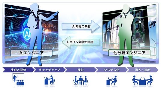これによりお客様先で業務を行っているエンジニアが現場の課題解決に必要なAIの理解と活用能力を向上する事で製品開発だけでなく、業務改善などAIエンジニアと連携した開発を行い、課題解決に取り組んでおります。