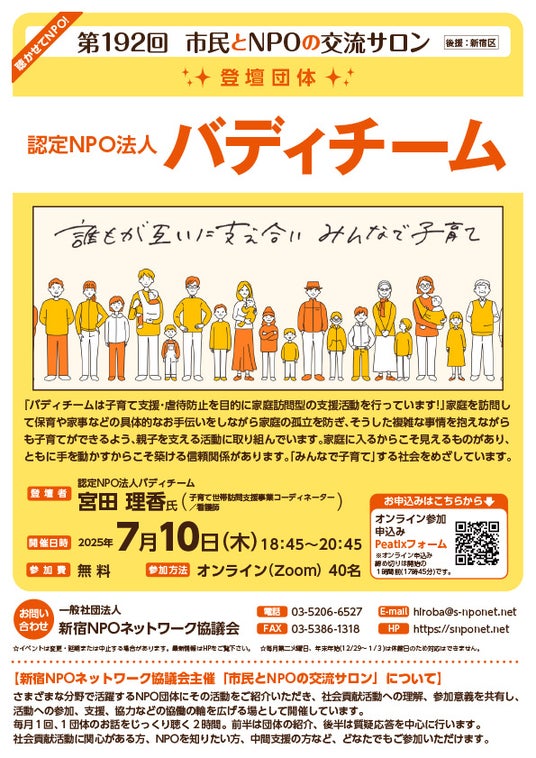 【第192回 市民とNPOの交流サロン】(登壇団体:認定NPO法人 バディチーム)