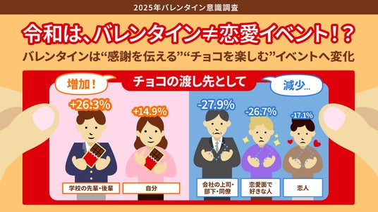 株式会社ロッテ(本社:東京都新宿区、代表取締役社長執行役員:中島英樹、以下ロッテ)は、2025年バレンタイントレンド調査として、今年のバレンタインに誰かへチョコを渡したいと思っている全国の10代~50代の女性500名を対象に「バレンタインに関する意識調査」を実施いたしました。