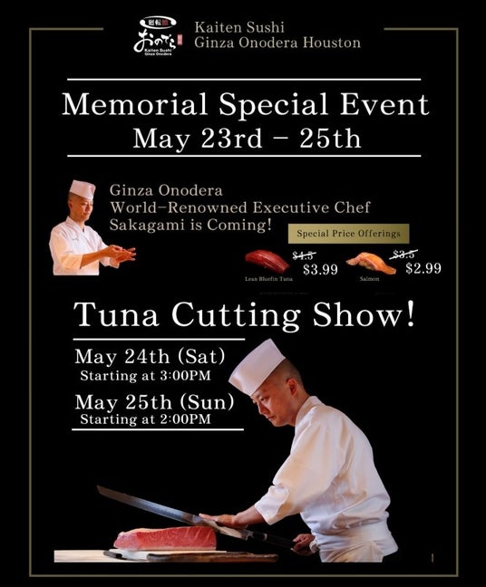 株式会社ONODERAフードサービス(代表取締役社長:小野寺 勇司 所在地:東京都千代田区)が運営する「廻転鮨 銀座おのでら ヒューストン店」(アメリカ合衆国テキサス州ヒューストン)は、2025年5月16日(金)~5月25日(日)(現地時間)の間、「オープン半年記念祭」を開催いたしますのでお知らせいたします。