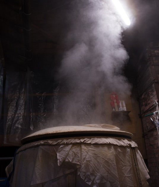 ▲ 鳥取県産の米で作られた麹◀ 酒蔵で行われる蒸米の様子