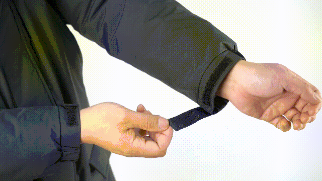 袖口部分を面ファスナーで調整することが可能で、冷気の侵入を防ぐことができます。