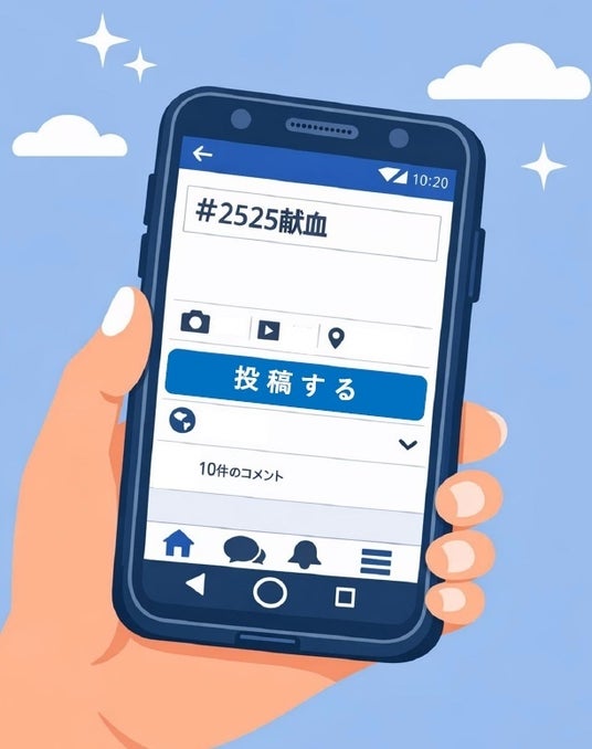 献血への想いとともに、ぜひ、みなさまのSNSにて**「#2525献血」**を付けて投稿していただき、献血の輪が広がっていくことを願っています。