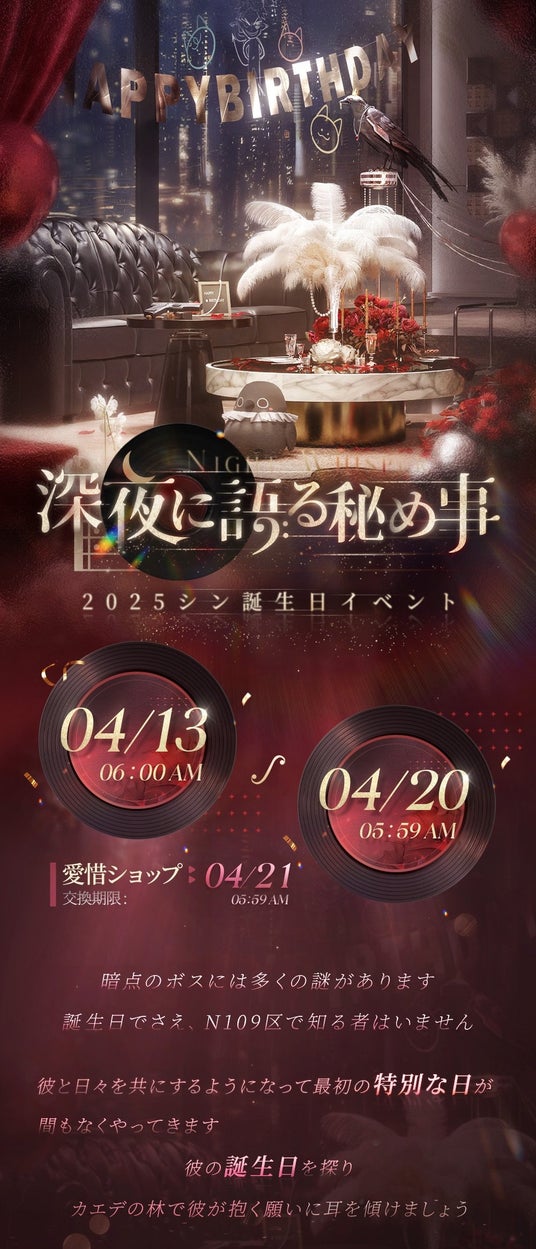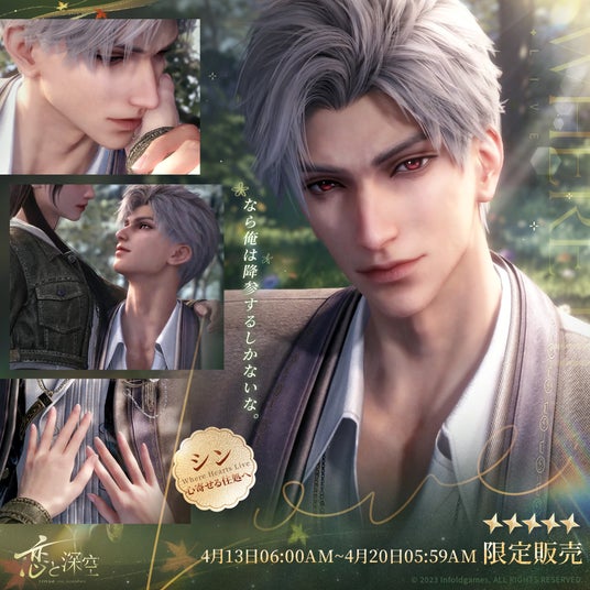 INFOLD PTE. LTD.は、全世界1億DLを突破した『恋とプロデューサー』の世界観を継承した完全新作恋愛シミュレーションゲーム『恋と深空』において、4月13日(日)6時よりシン誕生日イベント「深夜に語る秘め事」を開催することをお知らせいたします。