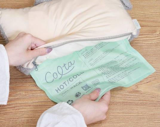 ぬいぐるみには別売りの保温・保冷ジェルを入れることができ、夏には保冷剤としてひんやり、冬には保温材としてポカポカ快適な温度で眠りをサポートします。おなかや腰を温めるなど、枕以外の使い方も可能です。