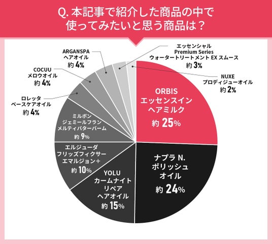 回答者にGranza Beautyの記事『洗い流さないトリートメントおすすめ10商品をプロが厳選|効果的な使い方、選び方の解説つき』にある商品の中でどの商品を使ってみたいかを聞いてみました。ここでは『使ってみたい洗い流さないトリートメントのTOP5』を紹介します。