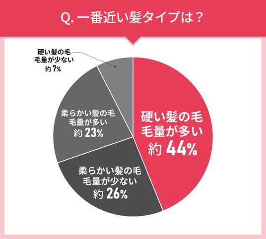 - 硬い髪の毛/毛量が多い:約44%